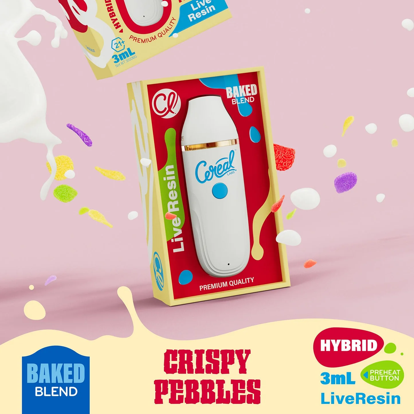 Cereal Labs Live Resin Crispy Crispy Pebbles are a hybrid edible product designed for adult consumers in regulated markets. Known for their unique combination of flavor and texture, these 3g servings provide a chewy, crispy experience inspired by popular cereal flavors. Their vibrant appearance and consistent formulation make them a standout in the edible market.